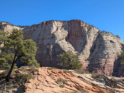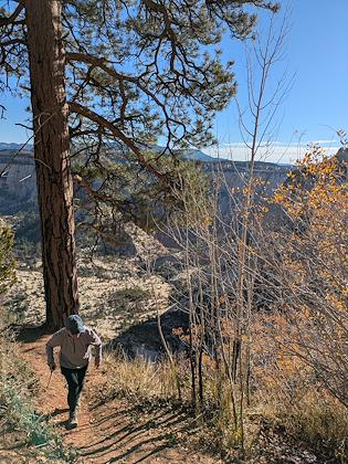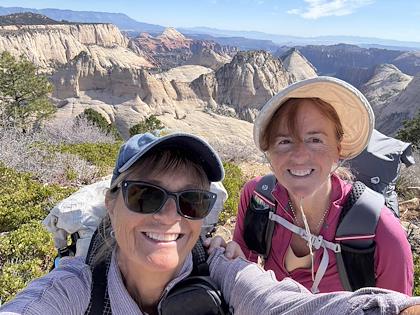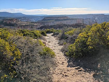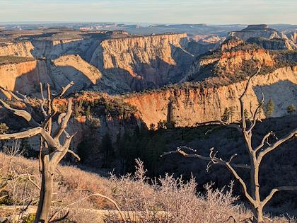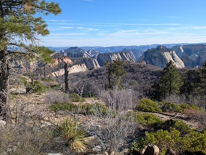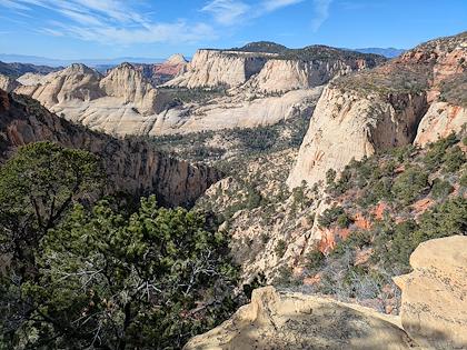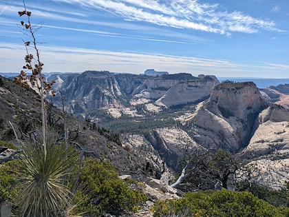 | We downhiked from Lava Point trailhead, so we mostly lost elevation, with about 1500 ft gain. This is the first scenic viewpoint. | |