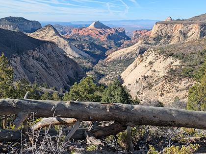 | We downhiked from Lava Point trailhead, so we mostly lost elevation, with about 1500 ft gain. This is the first scenic viewpoint. | |