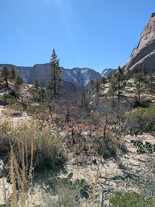 | We downhiked from Lava Point trailhead, so we mostly lost elevation, with about 1500 ft gain. This is the first scenic viewpoint. | |